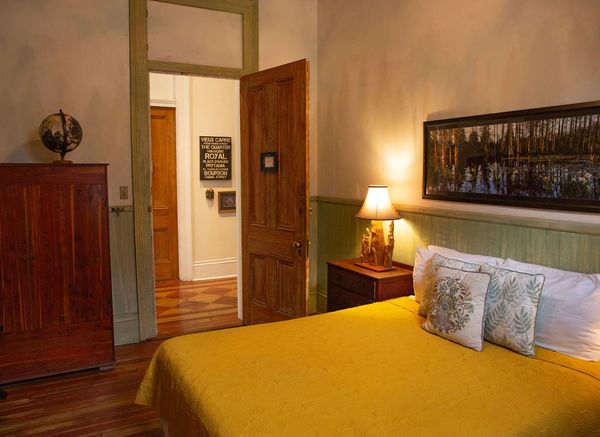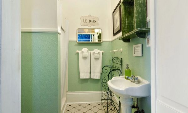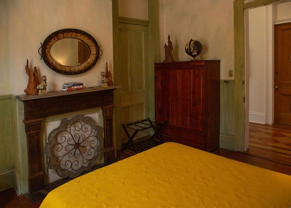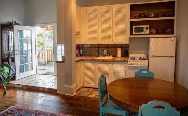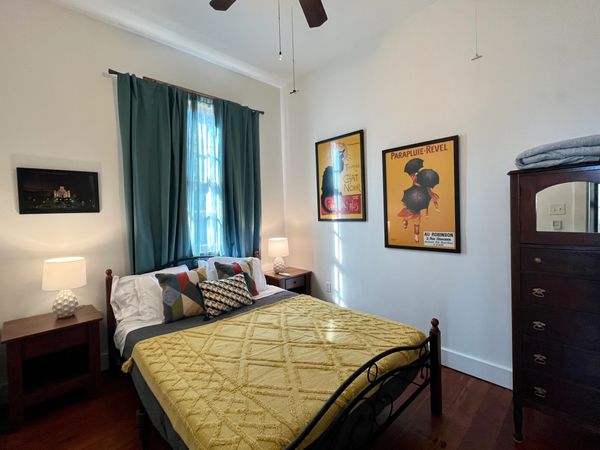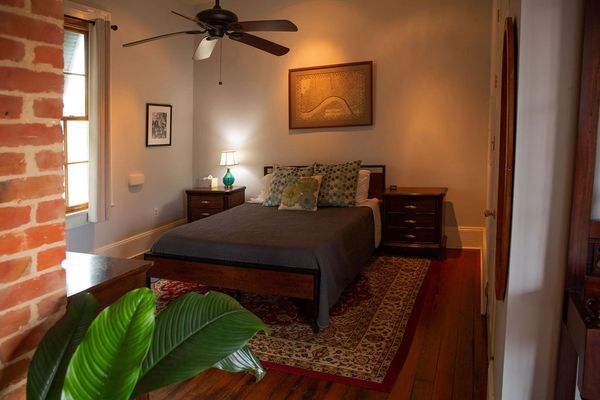 The apartment sleeps four with a queen bed and queen sleeper sofa. Other features are a full kitchen, walk-in closet, and a large updated bathroom with walk-in shower. The original hard wood floors and fireplace date back to when the apartment was added as a "garconniere" in the 1870s, for a creole family's teen-aged sons. The Balcony Suite is a charming, luxe, thoroughly romantic hidden gem you will not soon forget.