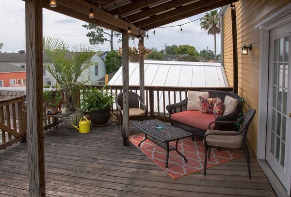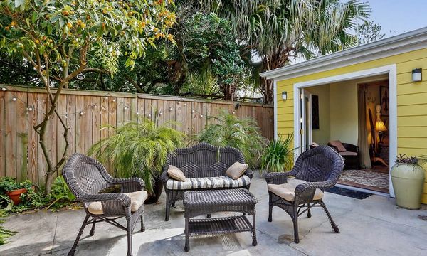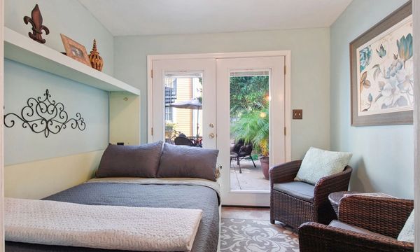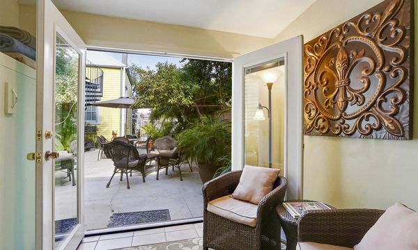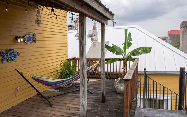 This airy and light-filled apartment in the sky is reached by a private courtyard spiral staircase. At the top, your climb will be rewarded with a large balcony and a stunning New Orleans rooftop view.