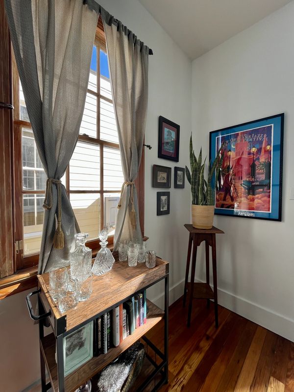 Indulge in the spacious Laura Suite, the Crown Jewel of the Sweet Olive! With two separate bedrooms, a completely renovated kitchen and bathroom with deep soaking tub and waterfall shower, this suite sleeps 6 and is the perfect space for a group traveling together to experience the city.